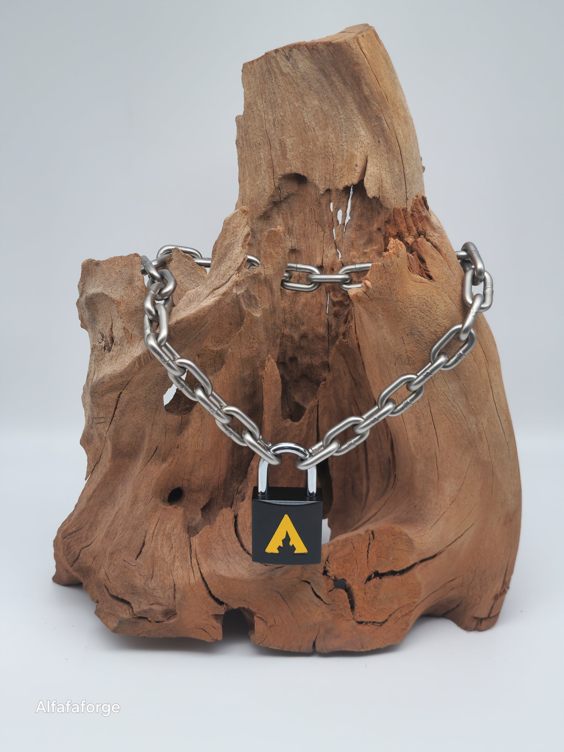 Mit der Alfa-Kollektion hast Du Dich für unser charakteristisches Markenlogo entschieden, das ein einfaches, aber markantes Design mit geraden Kanten aufweist. Diese Version hat ein Flare gelbes Logo auf einem schwarzen Vorhängeschloss.
