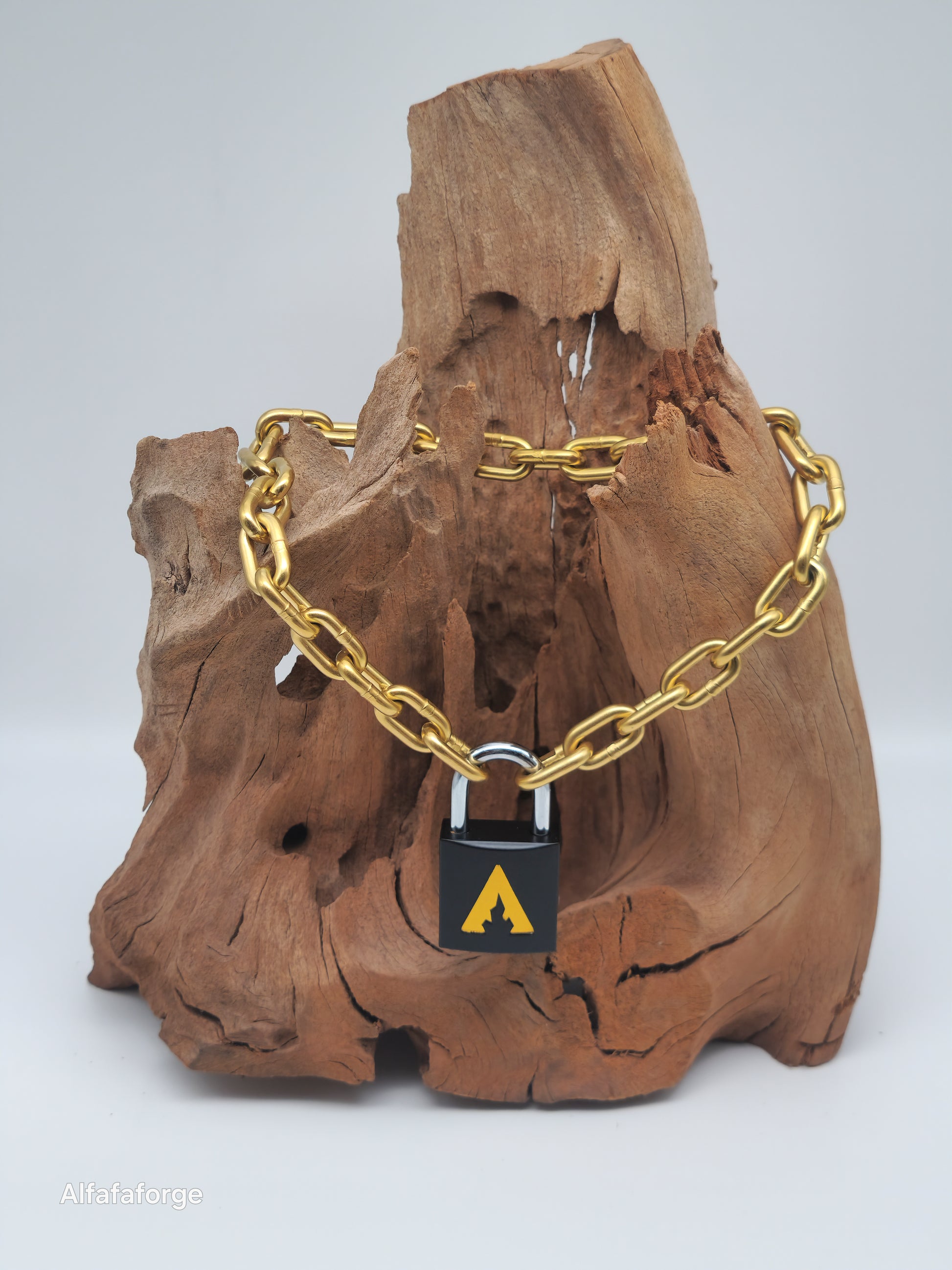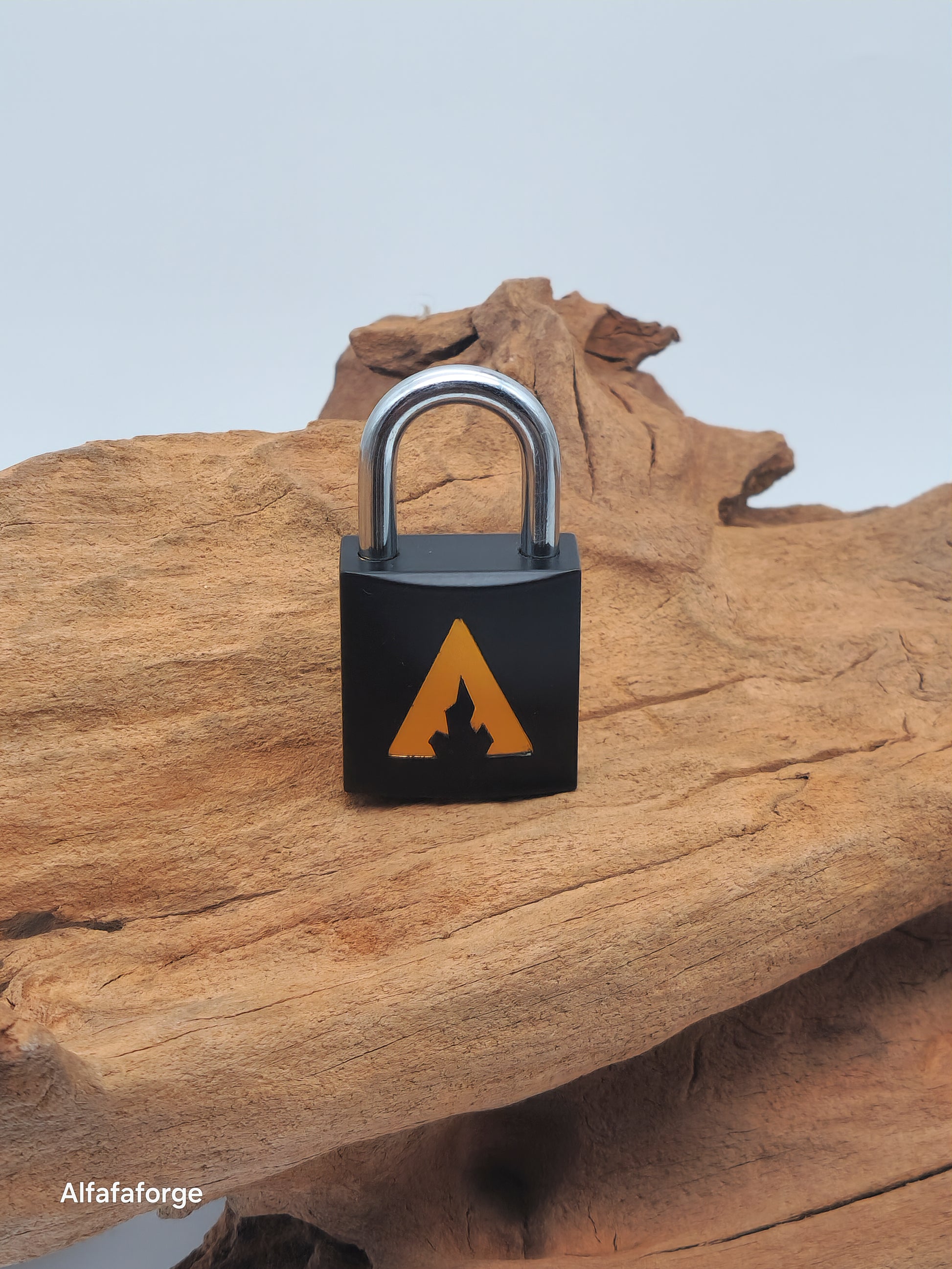 Mit der Alfa-Kollektion hast Du Dich für unser charakteristisches Markenlogo entschieden, das ein einfaches, aber markantes Design mit geraden Kanten aufweist. Diese Version hat ein Flare gelbes Logo auf einem schwarzen Vorhängeschloss.