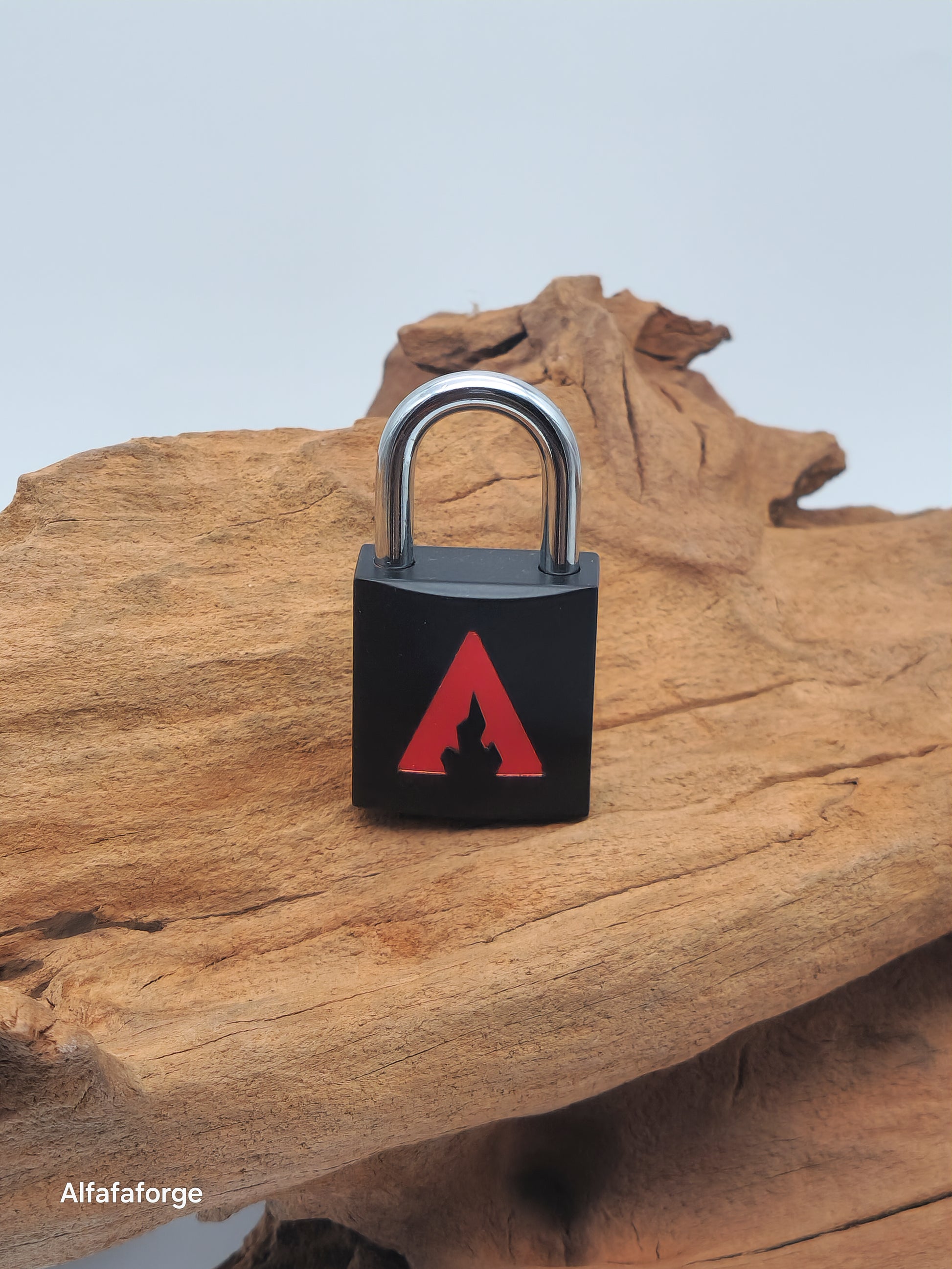 Mit der Alfa-Kollektion hast du unser charakteristisches Markenlogo gewählt, das ein einfaches, aber beeindruckendes Design mit geraden Kanten zeigt. Diese Version hat ein Inferno-rotes Logo auf einem schwarzen Vorhängeschloss.